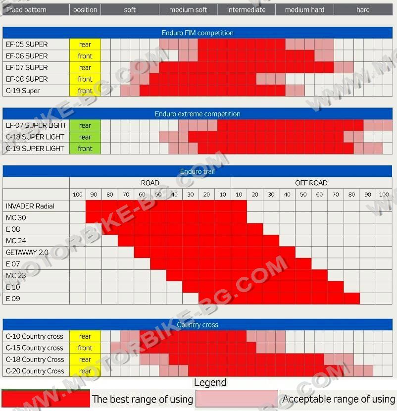 • Agressive small block chevron tread pattern gives it excellent grip, stability and cornering stability even in wet conditions. Available in a Heavy-Duty version or optional Ultra Heavy-Duty version (DAKAR) designed for extended durability.