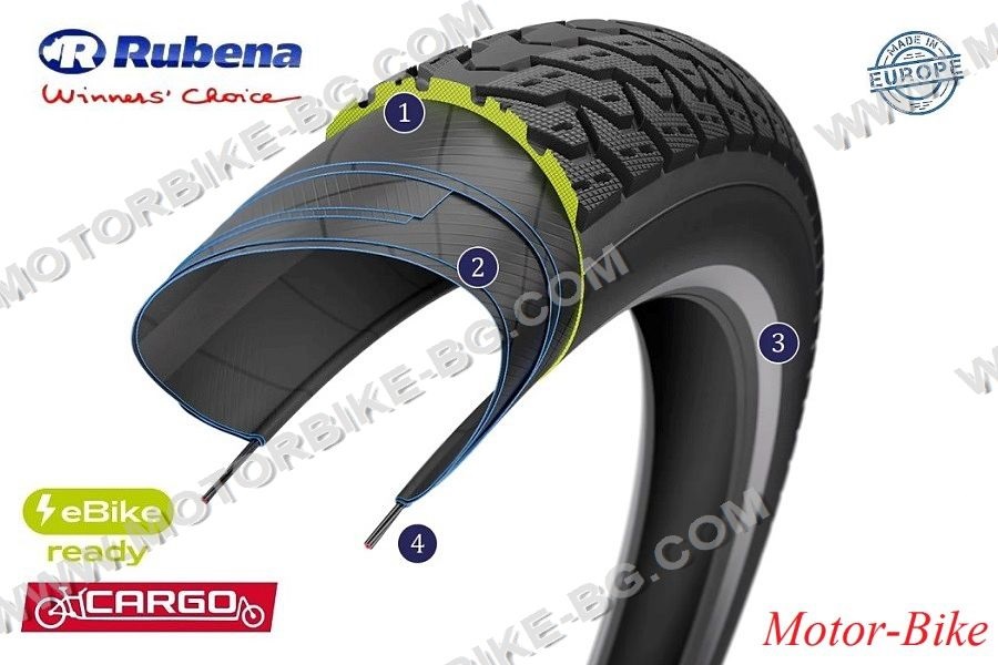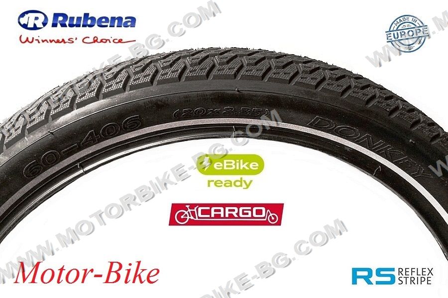 Bicycle tyre Rubena/Mitas 20x2.35 (60-406) R28 DONKEY CARGO - 60/100-16 M/C 38B REINFORCED