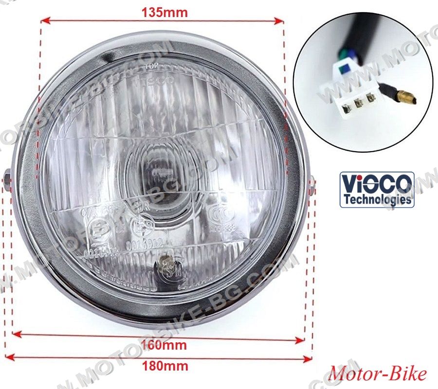 ФАР КРЪГЪЛ ХРОМИРАН VISCO Ф160мм - Honda CG125 89-00 / GN125 / Cafe Racer / Bobber