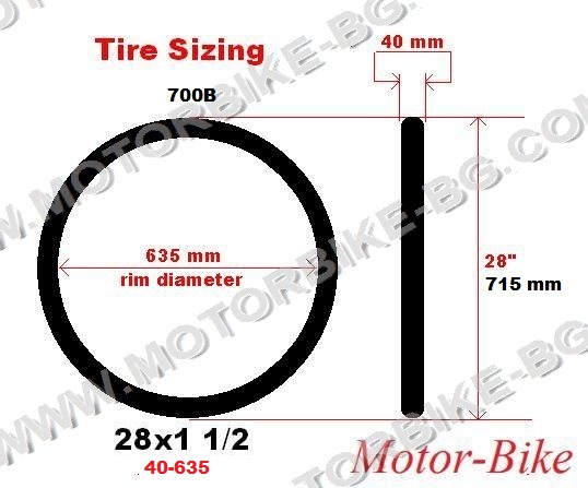 635 мм диаметър на джанта - 28x1 1/2 ЦОЛА / 28x1 1/2" (635 mm)