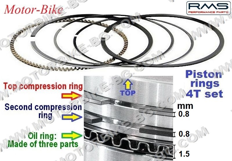 | Резервни части за скутери и мотоциклети / Motorcycles & scooters products, spare parts | Универсални части / Universal parts | Сегменти за бутала - ПО ВИД / Piston rings - BY TYPE | Четиритактови сегменти / Four-stroke piston rings | Размер от 56.00 до 61.75 мм / Size from 56.00 to 61.75 mm