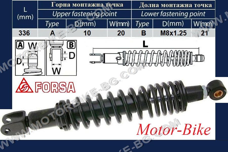 Rear adjustable shock absorber 50cc Forsa (Black) OEM No.: 4VVF22100000 / 01004603 Applicable to: ATALA: Atala Carosello 50 AIR 2T '98-'02 BENELLI: Benelli Pepe 50 AIR 2T '98-'02 ... Доставно тегло: 1,100 кг