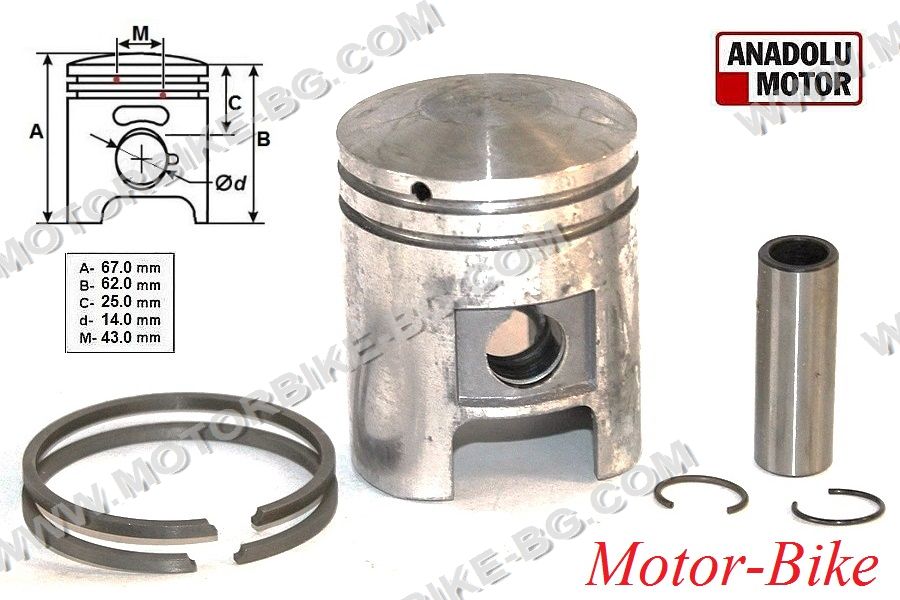 Minsk Piston kit D-52.25mm (piston pin Ø14mm) Piston rings Side gap F-type D-52.25mm x 2.5mm (2 pcs.) 2T 125cc