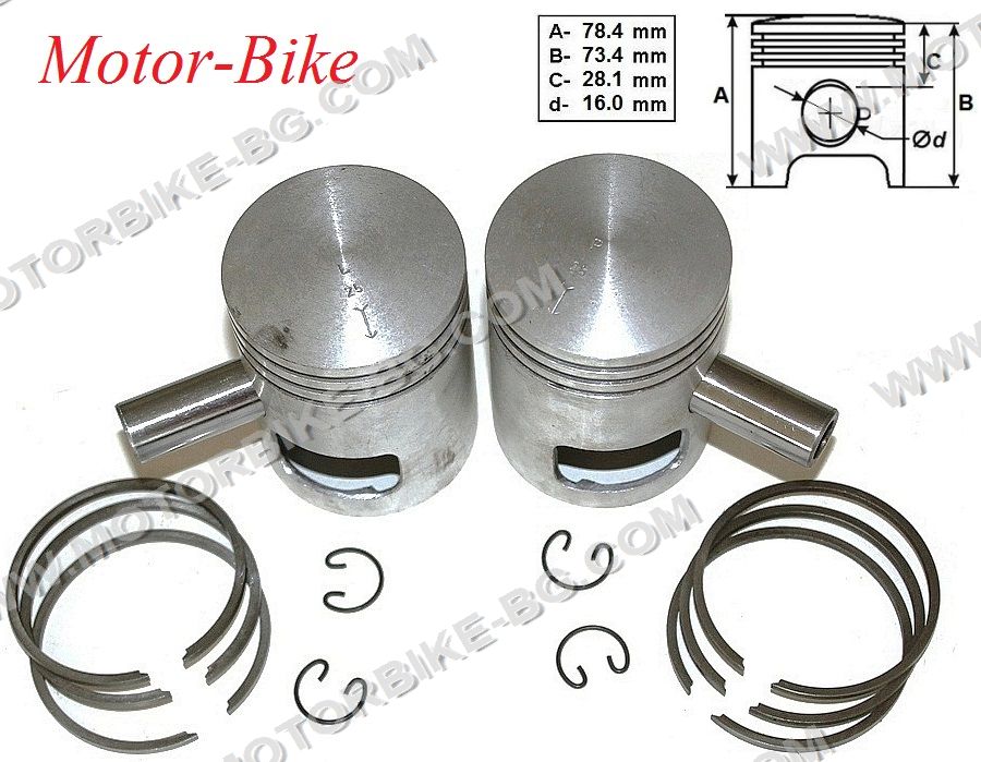 CZ / JAWA Pistons kit L+R D-59.00mm (piston pin Ø16mm) Piston rings internal gap F-type D-59.00mm x 2.5mm (2 x 3 pcs.) 2T 350cc